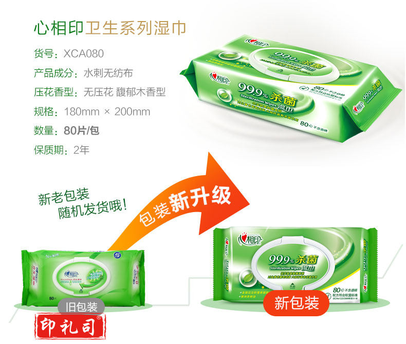 心相印 XCA080 抽取式消毒湿巾 80片/包 180mm*220mm