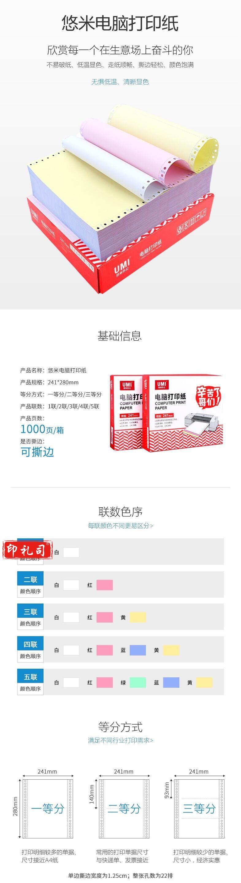 悠米 241-4 四彩无等分 60g电脑打印纸 1000页