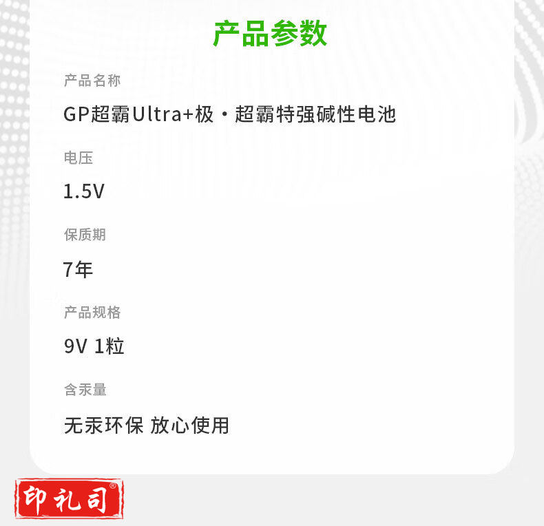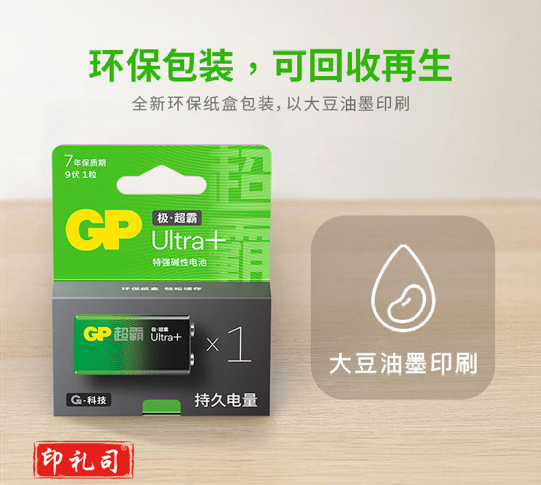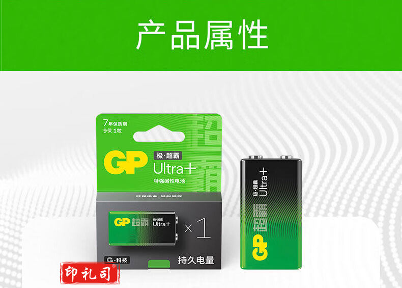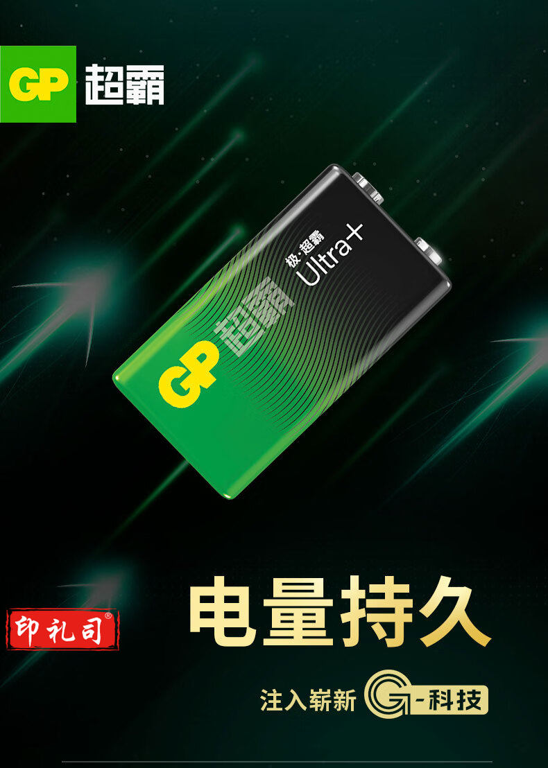 超霸(GP)9V 1粒 碱性方块电池 九伏U能高性能数码适用于万能表/无线麦克风/电子仪表