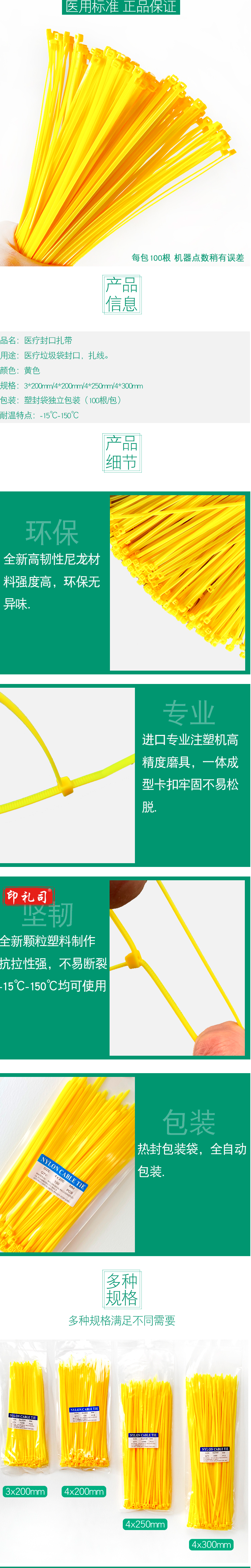 黄色尼龙扎带废物扎袋4*250mm 100根/包(其它规格咨询客服)