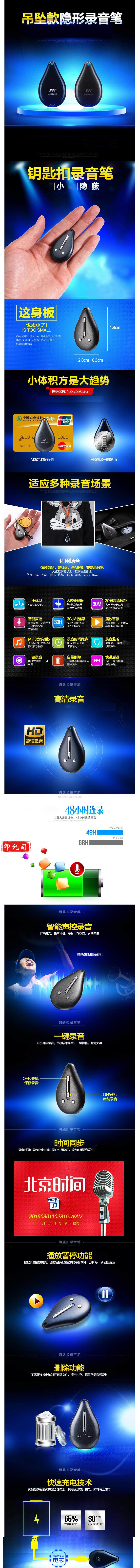 M3吊坠录音笔 超远距离微型专业高清隐蔽录音器 MP3 宝石蓝 8G