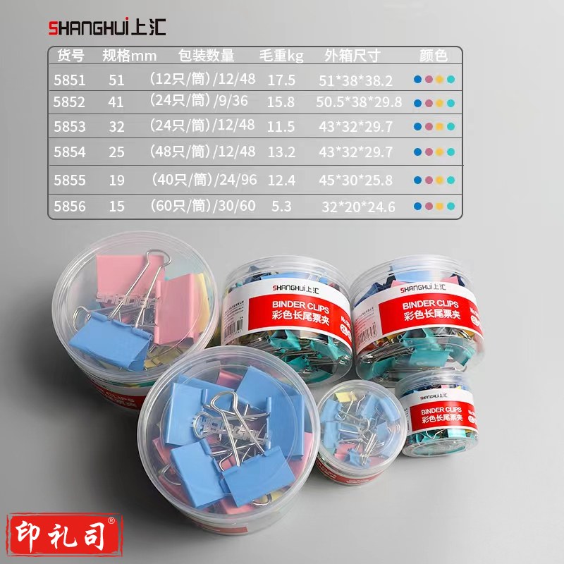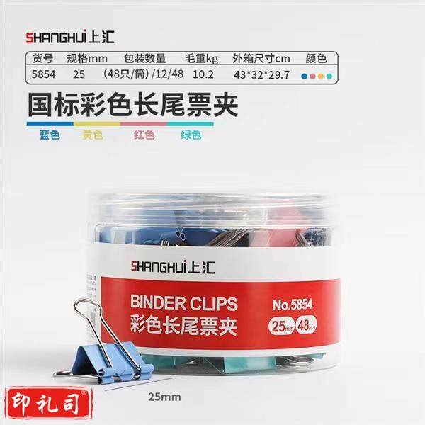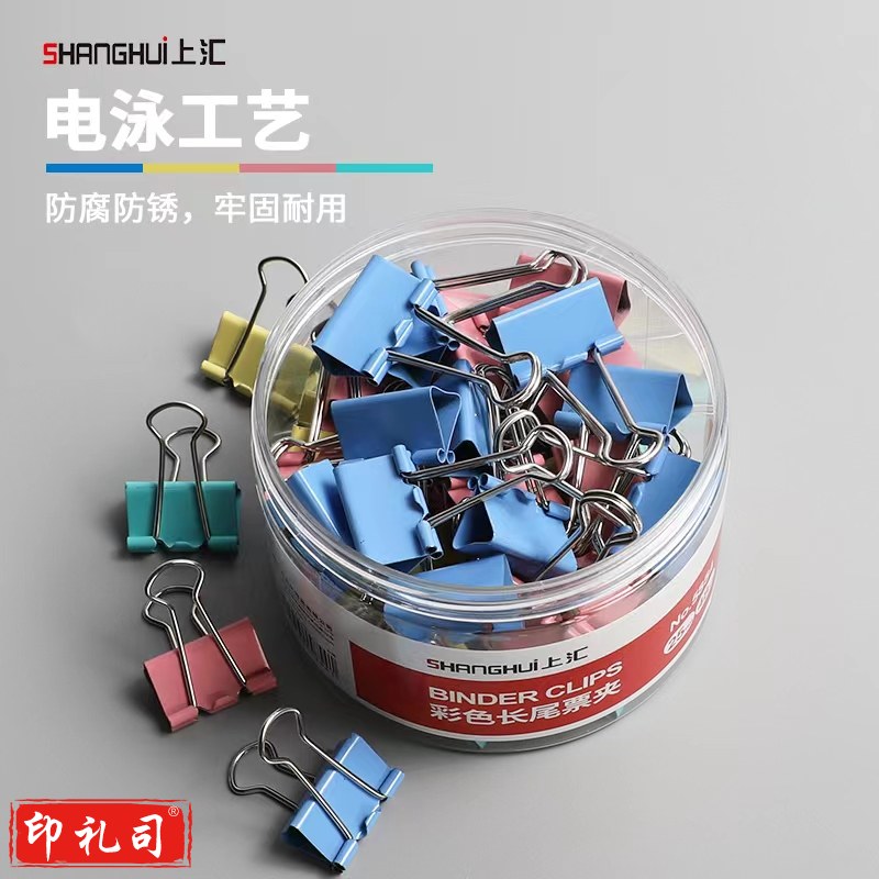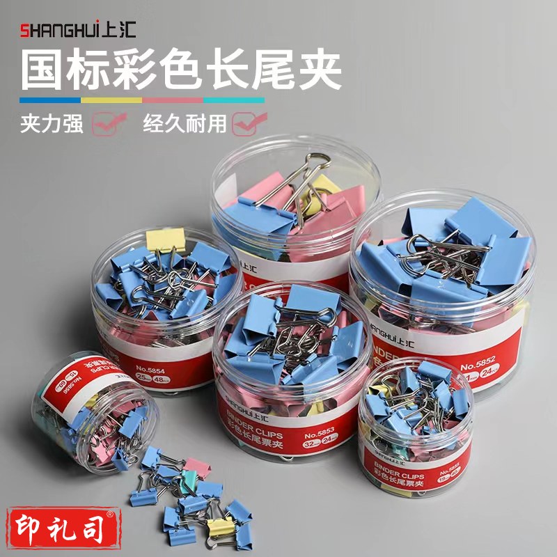 上汇长尾夹凤尾夹(25mm/48只/筒)4号文具办公资料铁夹黑色金属燕尾夹彩色大号文件夹小号票据试卷夹鱼尾夹不锈钢 5854彩色中号