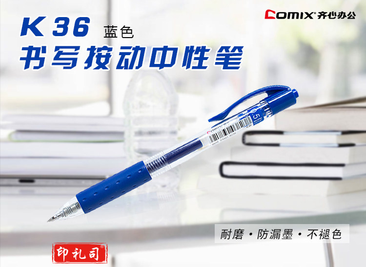 齐心 K36 0.5mm 按动式中性笔 匹配笔芯R929 蓝(单位:支)