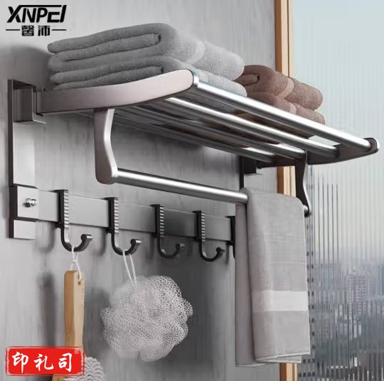 太空铝折叠晾毛巾架 免打孔 单杆浴巾架卫生间浴室衣服置物架