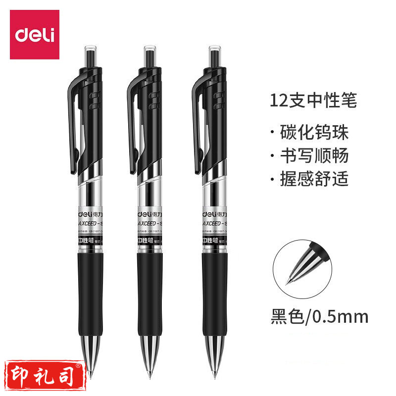 得力S01中性笔(黑)(12支/盒)
