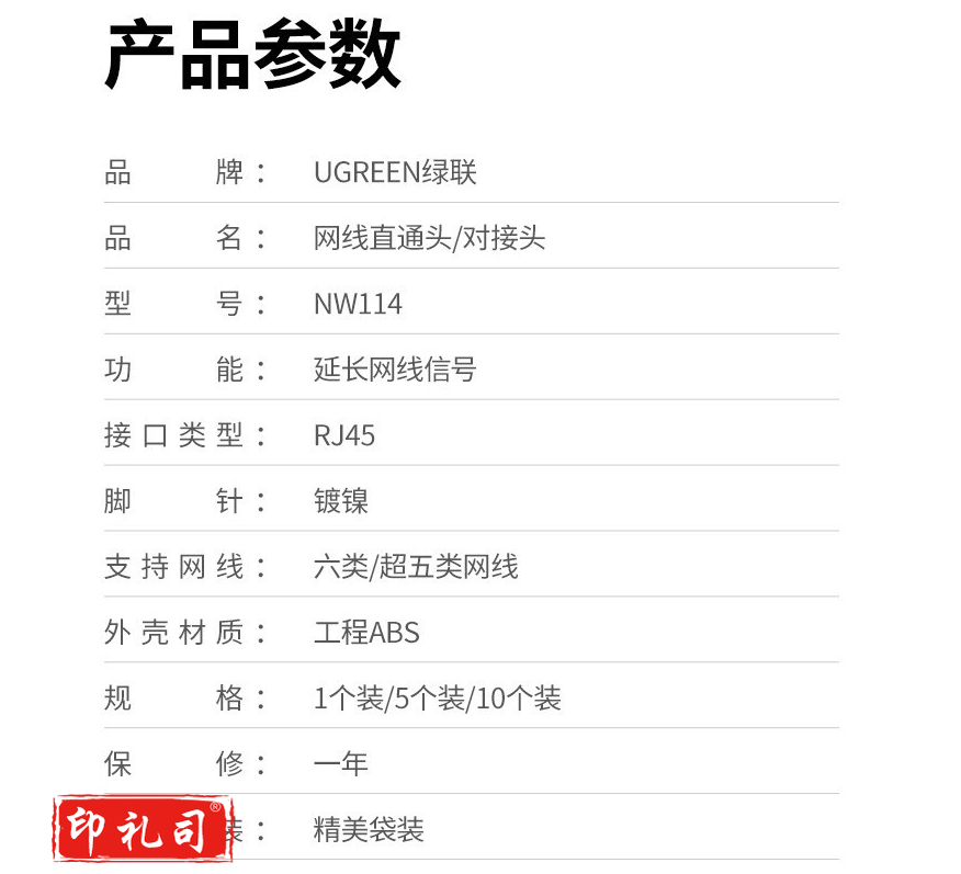 绿联 RJ45网线连接器 单只装 20390(黑色)