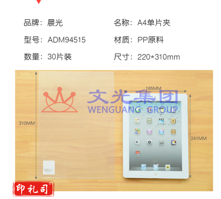 晨光 单片夹/二页文件套PP材质资料夹ADM94515 30个/包 单个价格