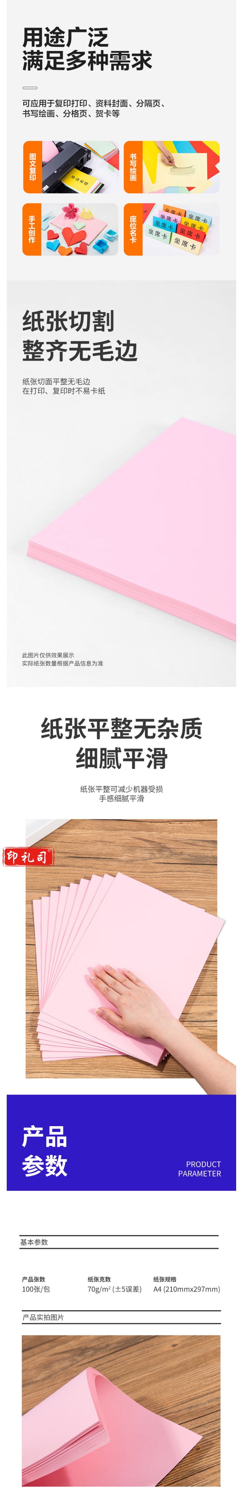得力 A4彩色打印纸卡纸折纸 彩纸100张/包 下单备注颜色