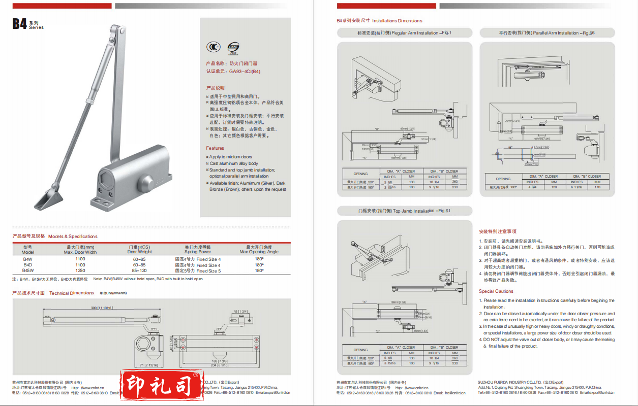 B4 防火门闭门器 液压自动闭门器(不含安装)货号:JC