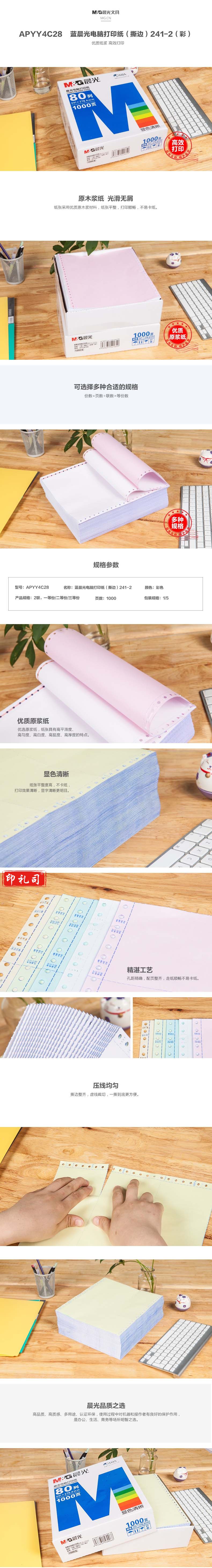 晨光/M&G APYY4C28A 二联一等分 电脑打印纸 80列彩色可撕边 单位:箱