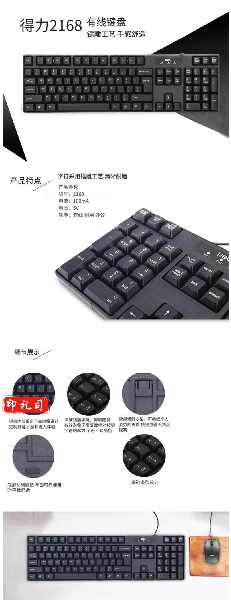 得力(deli) 2168 USB键盘 游戏键盘 防水薄款黑色