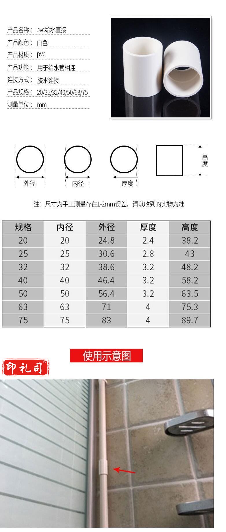 PVC直通直接 管箍 20mm 25mm 货号:JC