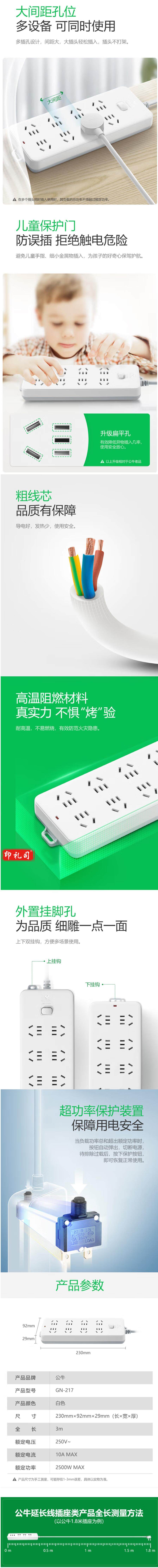 公牛 GN-217 8位总控 5米多位插座 过载保护插座 接线板