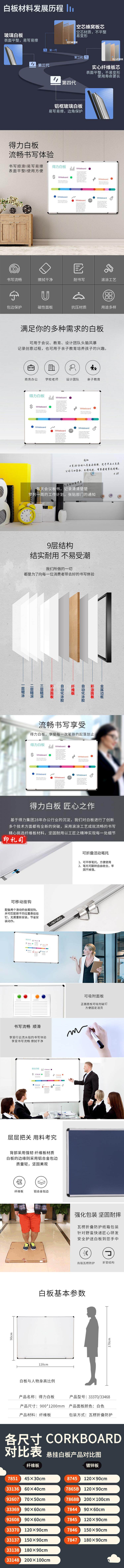 得力120*90cm 悬挂白板 磁性白板7855(白)(块)