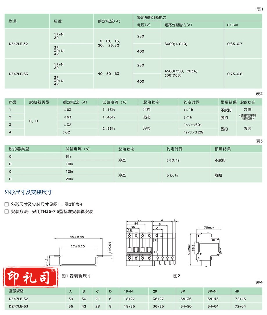 人民电器 DZ47LE-3P40A 4L 漏电保护器