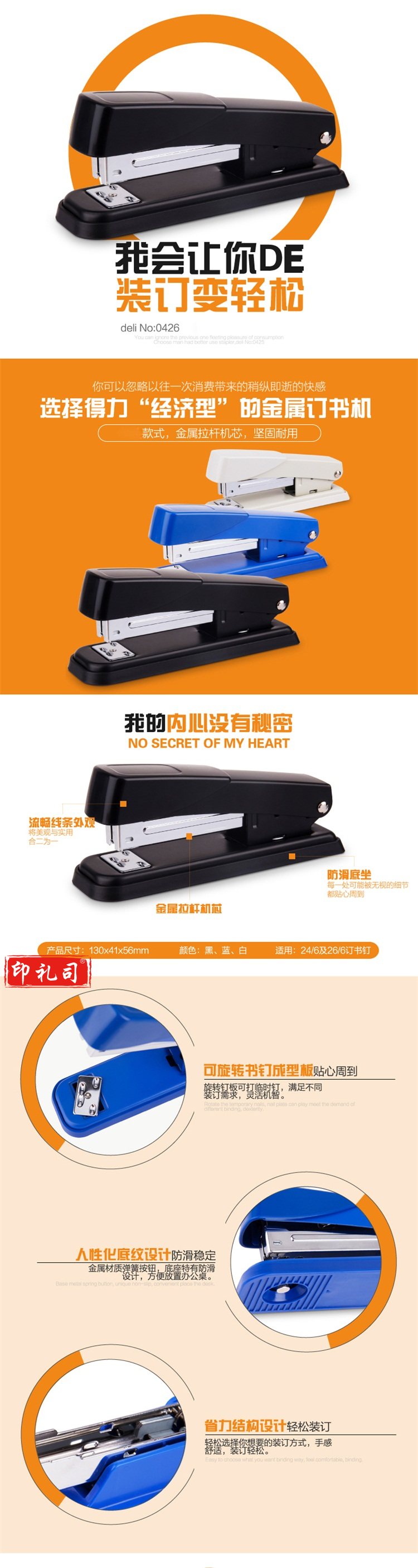 得力(deli)金属材质订书机/订书器(24/6或者26/6钉型)黑色0426