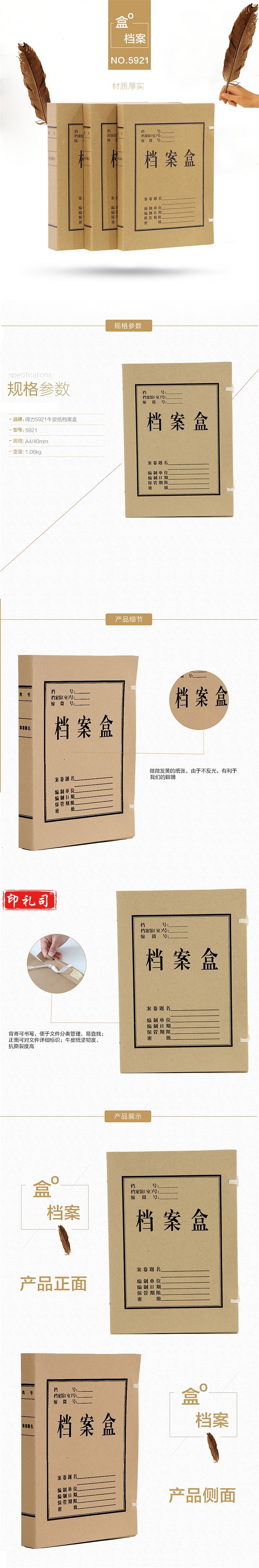 得力 5921 档案盒 310*220*40mm 10个装 牛皮纸文件袋