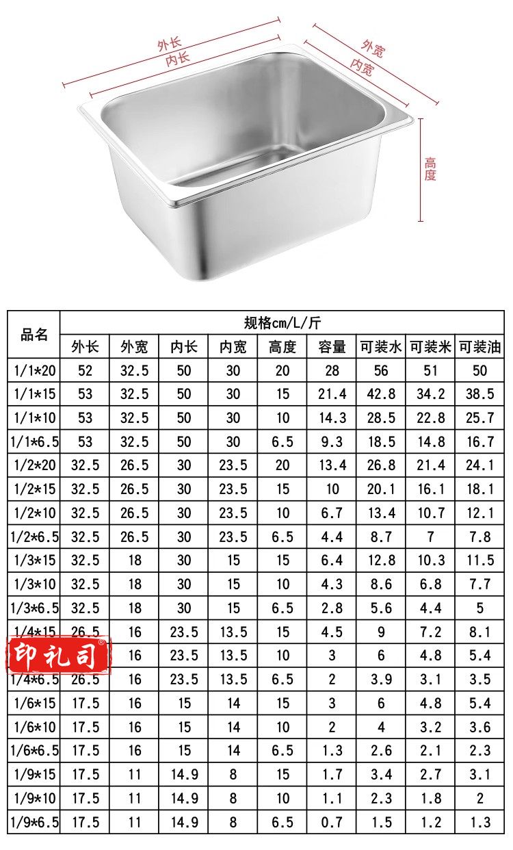 9cm深不锈钢份数盆盒子分数盒餐盆食堂打菜盆盛菜盆长方形食品级