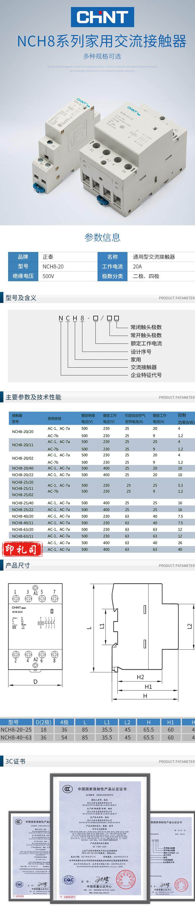 正泰接触器 NCH8-40/40AC220/230V