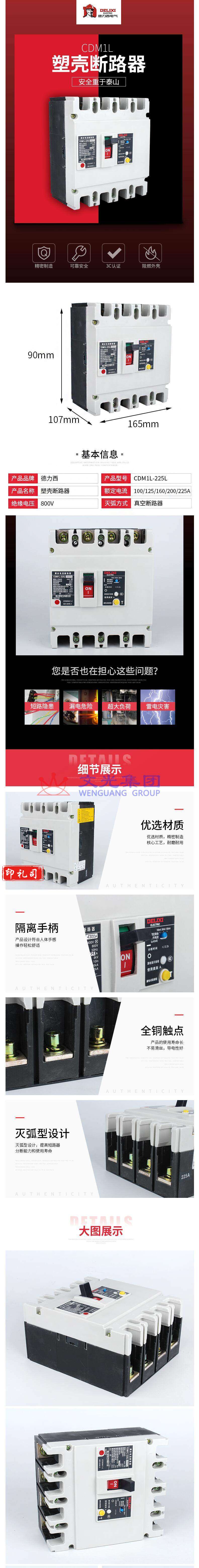 德力西 塑壳漏电开关 CDM1L-225L/4300 三相四线160A A档型塑壳漏电保护器