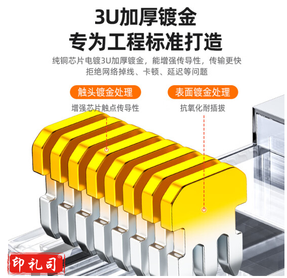 超五类网络屏蔽水晶头 【镀金铜壳】 千兆RJ45网络水晶头
