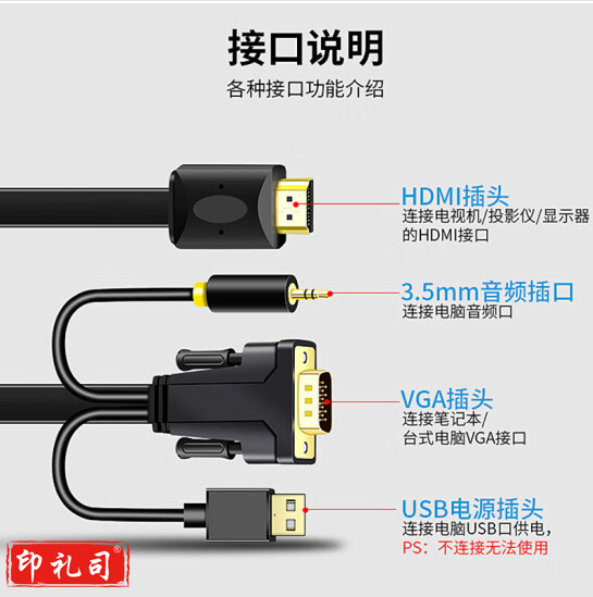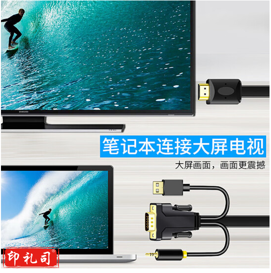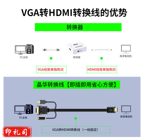 VGA转HDMI转换线器带音频 高清视频适配器 黑色2米 Z140G