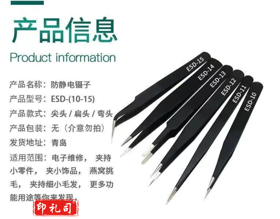 ESD-12 防静电镊子 不锈钢镊子细尖头防静电镊子 夹维修工具套装