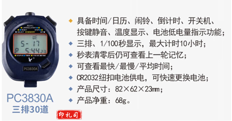 三排30段秒表裁判计时器多功能倒计时 PC3830A