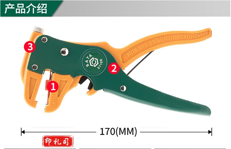 世达(SATA) 91108鸭嘴型自动剥线钳万用多功能钳剥线器剥皮器剥皮钳6.5英寸 (91108) 万用剥线钳6.5"
