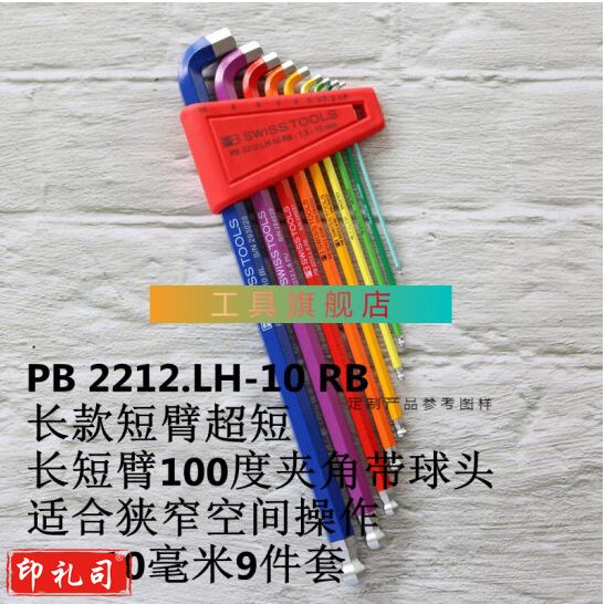 PB SWISSTOOLS瑞士彩色公制加长球头内六角扳手套装进口英制六角螺丝刀维修工具 2212.LH-10RB彩色长球头9件套