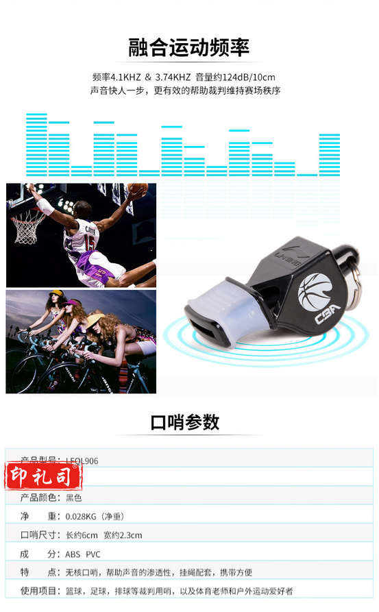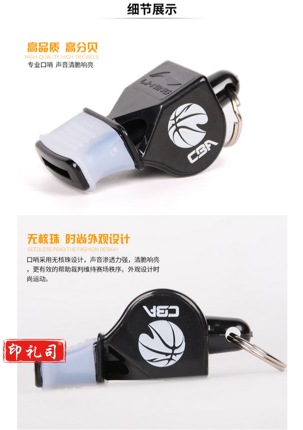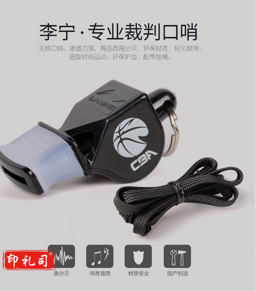 李宁LI-NING裁判哨子篮球足球排球专用比赛口哨救援无核安全塑料哨子 幻夜黑-标准款【送挂绳952-1】