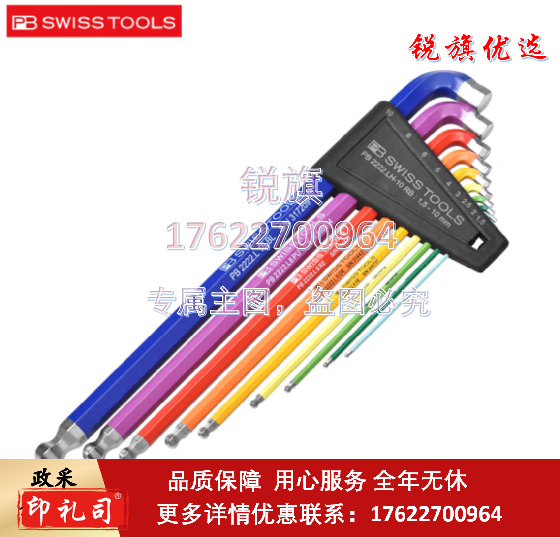 瑞士原装进口PB SWISS TOOLS彩虹内六角扳手套装加硬加长球头工具 彩色球头加长内六角9件套PB2222.LH-10RB