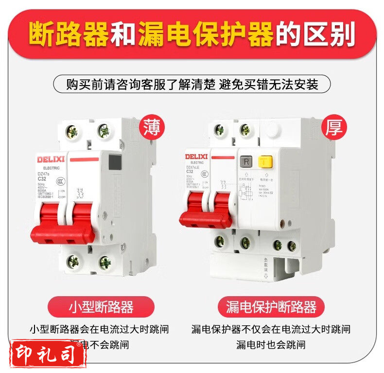 德力西电气空开断路器空气开关漏电保护器DZ47sLE 2P 10A 销售单位:个