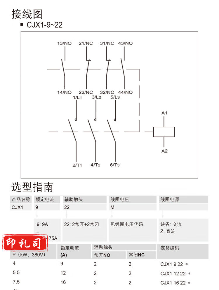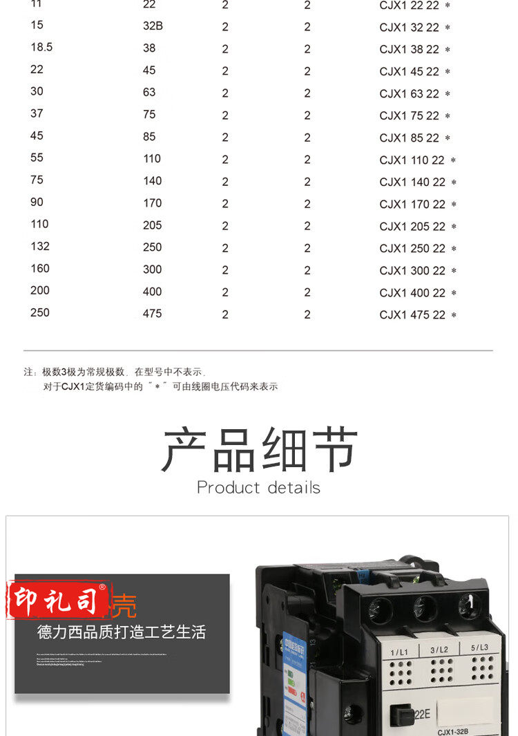 德力西直流接触器 CJX1-9/22Z DC24V 销售单位:个
