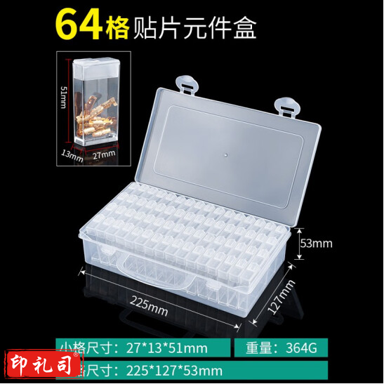鹿仙子 贴片零件元件盒透明小格塑料收纳盒电子元器件物料螺丝储物盒 64格【独立小格】