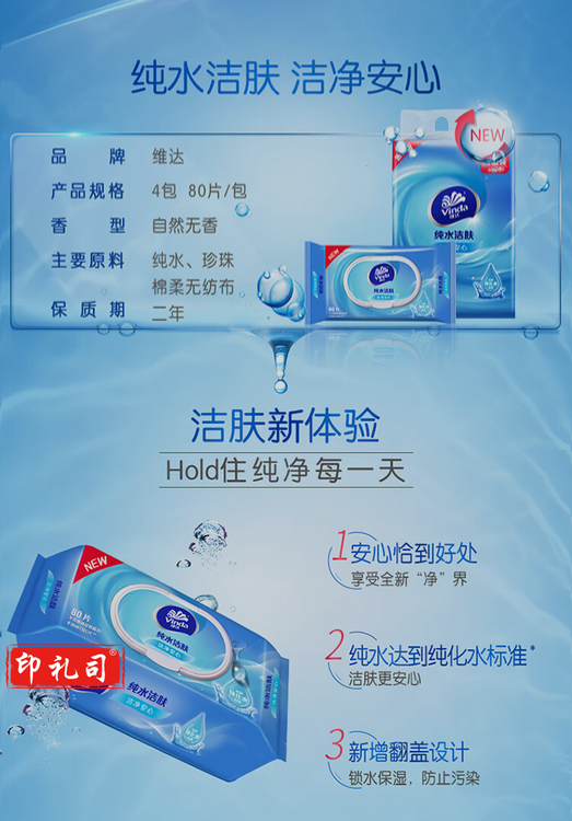 维达(Vinda)湿巾【赵丽颖推荐】湿纸巾纯水湿巾80片*4包 婴儿湿巾 母婴湿巾纸