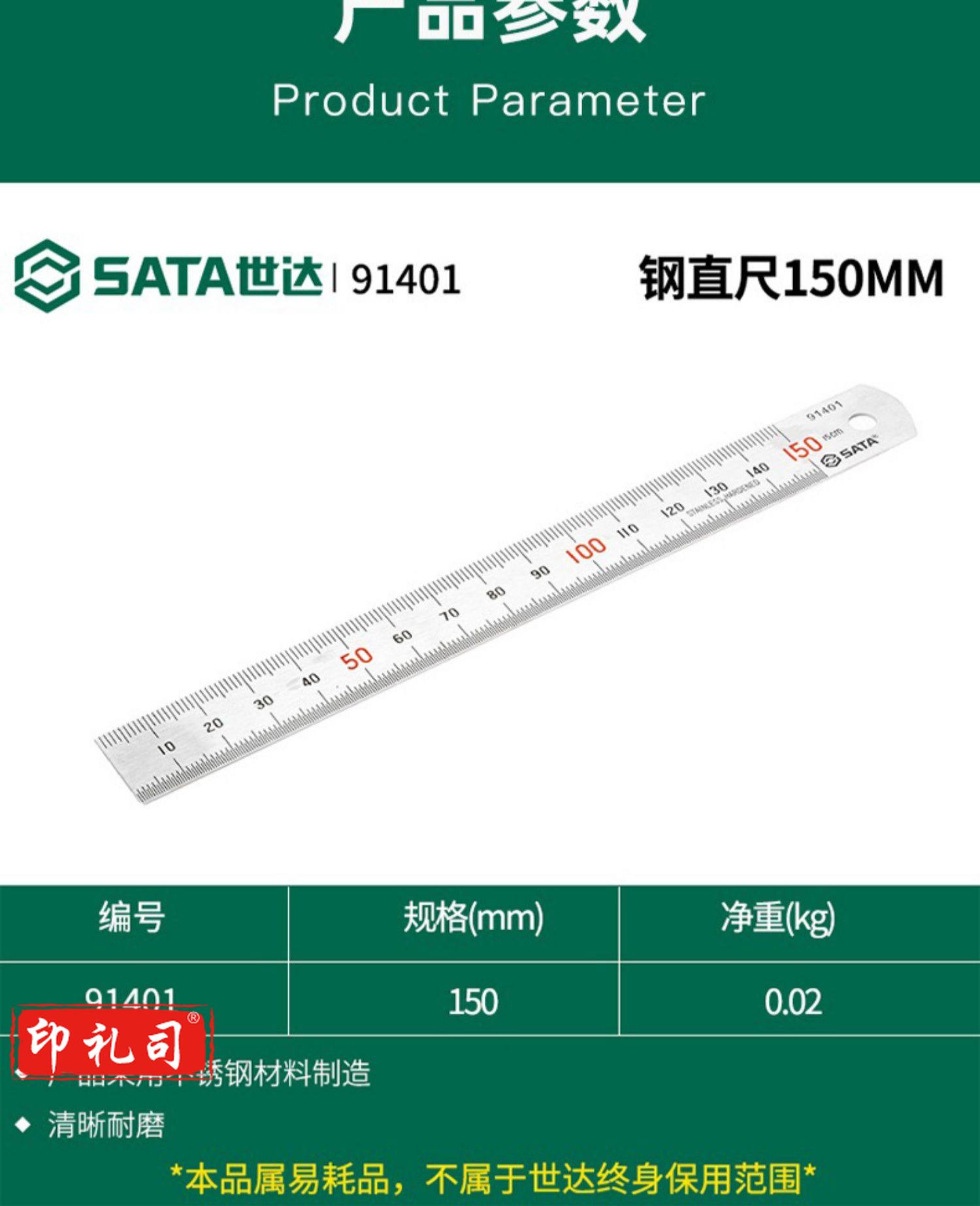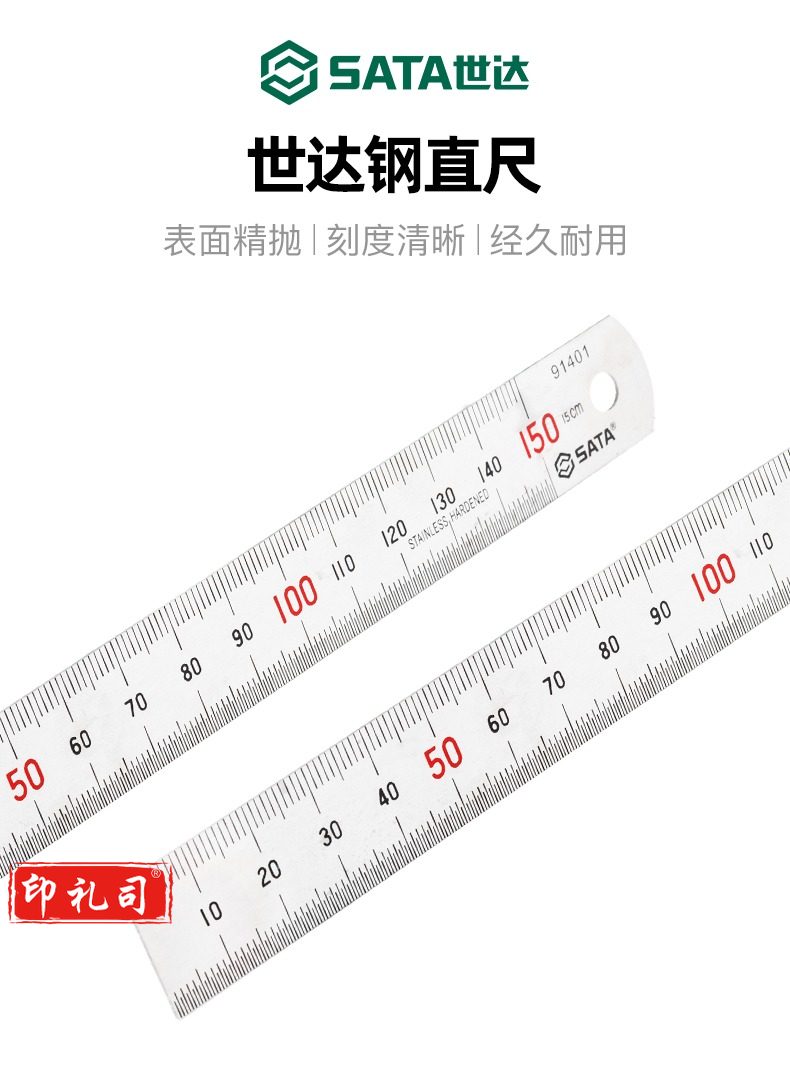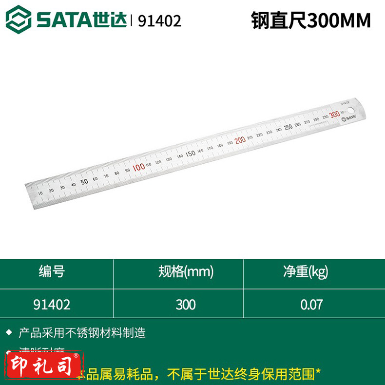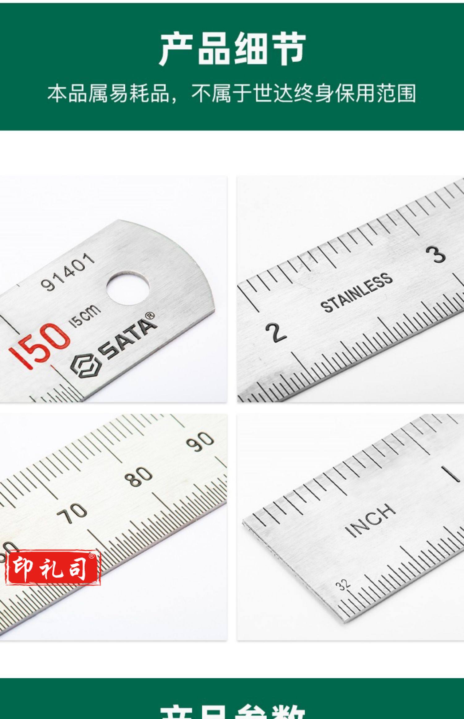 世达 钢直尺广告防护钢板尺30厘米测量木工不锈钢文具尺子 91401 销售单位:把