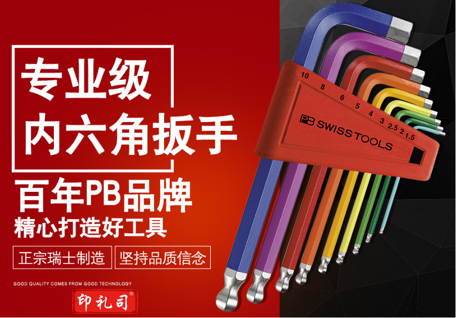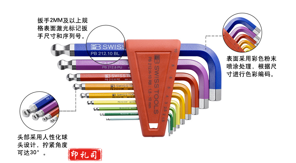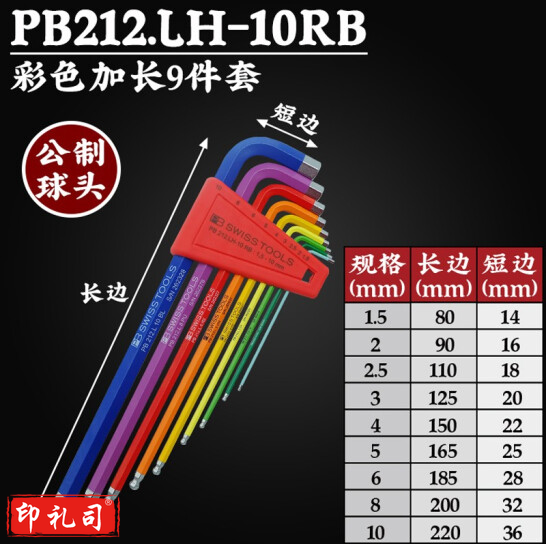 PB SWISSTOOLS瑞士彩色公制加长球头内六角扳手套装进口英制六角螺丝刀维修工具 212.LH-10RB彩色长球头9件套