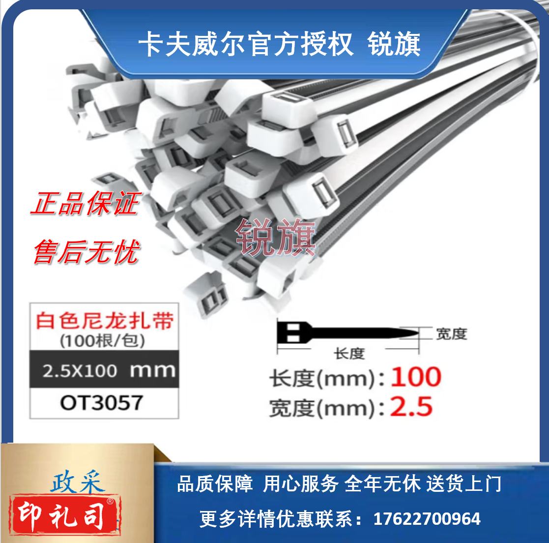 卡夫威尔 自锁式尼龙扎带小号工业扎丝 园艺扎线带 扎带理线带束线带捆扎带 2.5*100mm 白色 100支装 OT3057