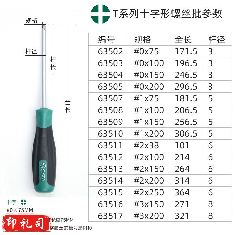 世达(SATA)工具T系列十字形螺丝批S2带磁性起子改锥螺丝刀工业 #3x200MM 63517