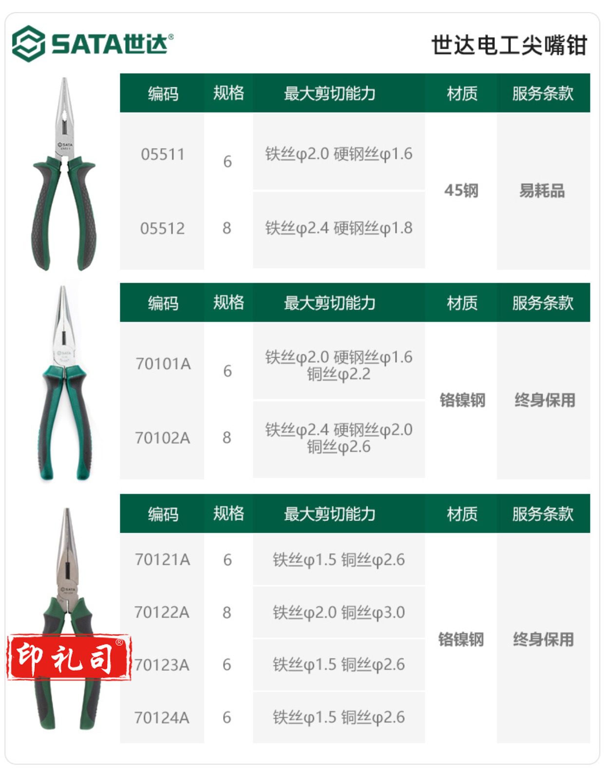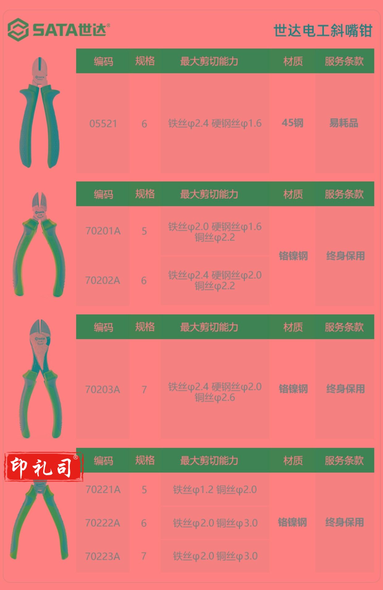 世达尖嘴钳电工专用省力钢丝钳工业级老虎钳多功能钳子家用斜嘴钳 6寸/05501 销售单位:把