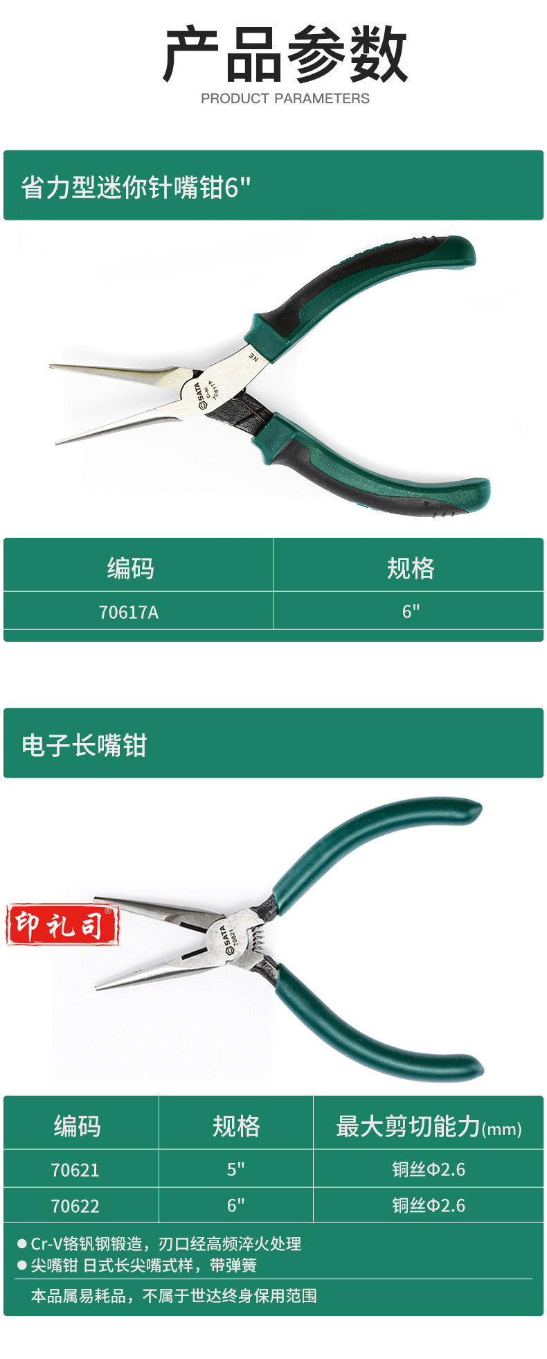 SATA/世达 省力型迷你针嘴钳 SATA-70617A 6" 1把 销售单位:把