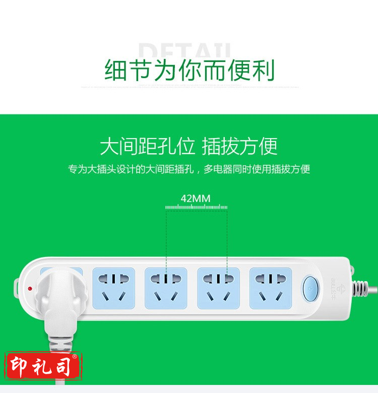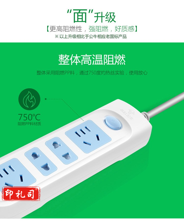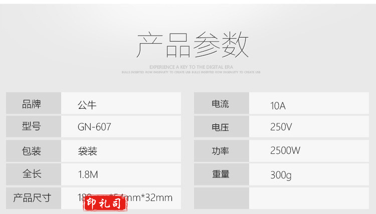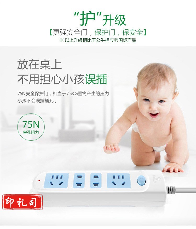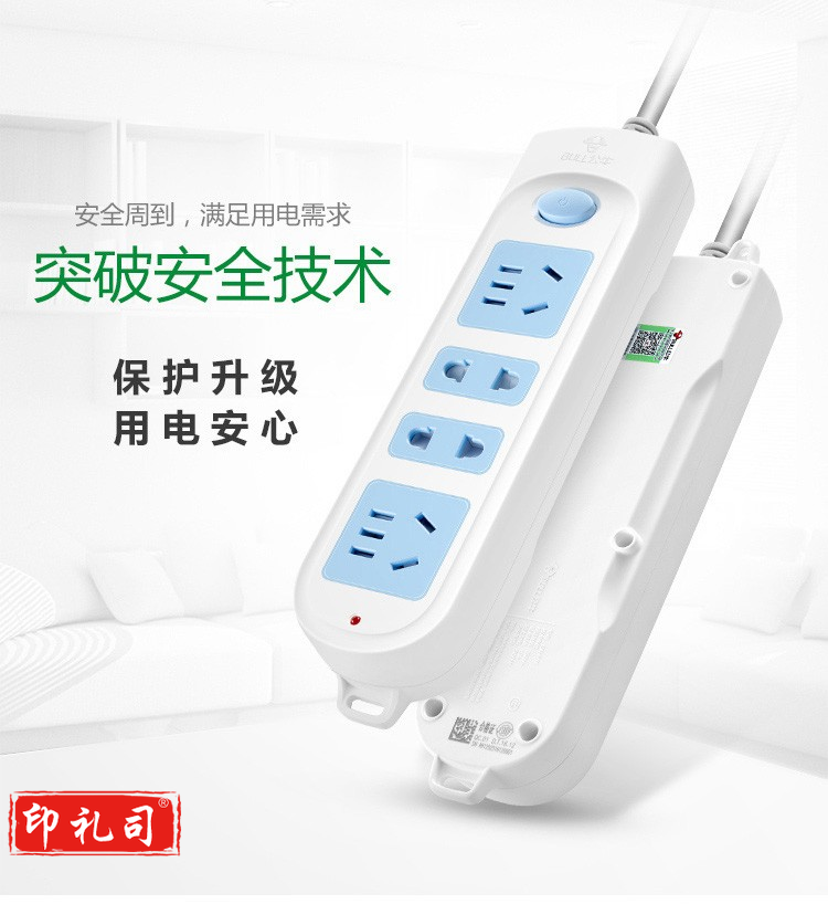 公牛插座多功能插排多用插板带线家用排插多孔插线板/拖线板/接线板/电插板/插座板 4插位总控开关 全长3米GN-607