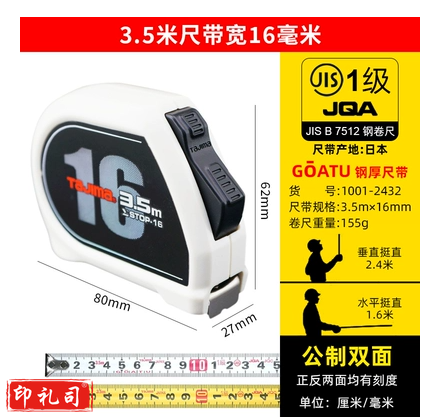 田岛(TAJIMA)日本 TAJIMA田岛钢卷尺5米卷尺盒尺钢厚高精度测量进口尺带自动锁 3.5米16mm 1001-2432