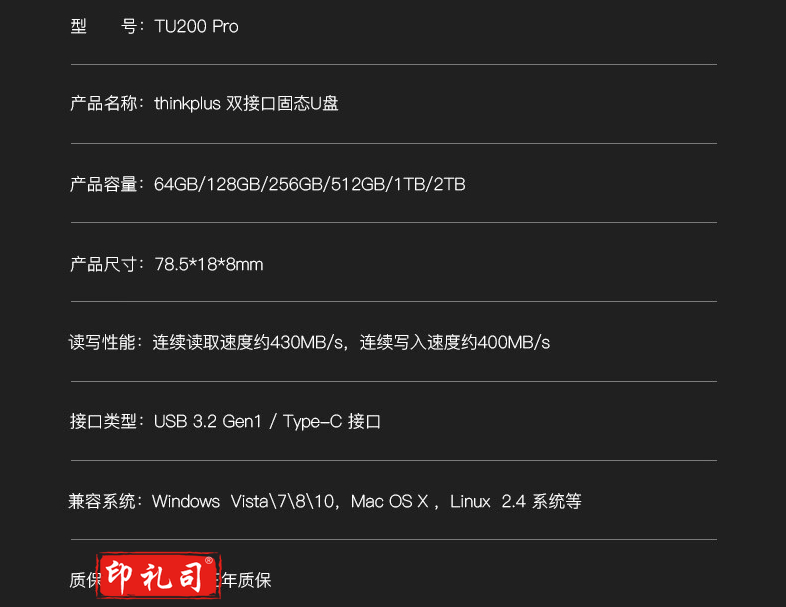 联想thinkplus双接口固态u盘 高达430MB/S usb/type-c手机高速大容量办公优盘 双接口固态U盘【1TB】
