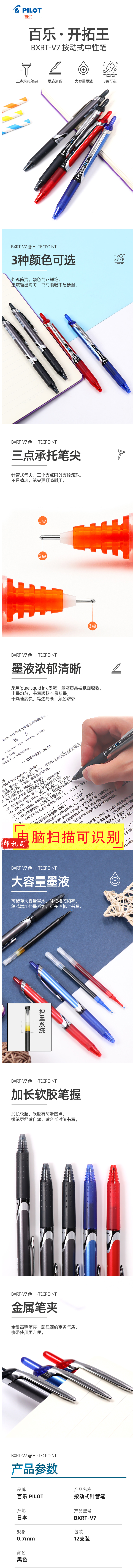 日本百乐 BXRT-V7黑色按动针管笔中性笔签字笔 0.7mm 12支装