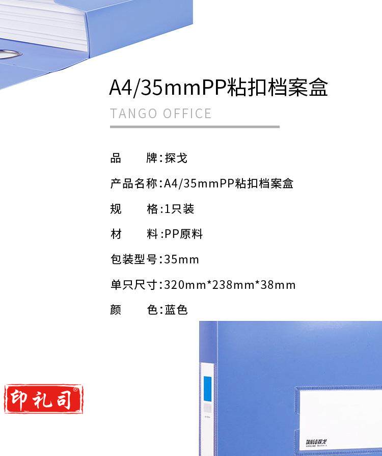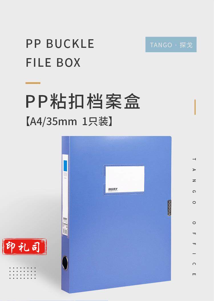 天章办公(TANGO)A4/35mmPP粘扣档案盒/加厚文件盒/财务凭证收纳盒资料盒/蓝色/单个装55mm蓝色-1个装