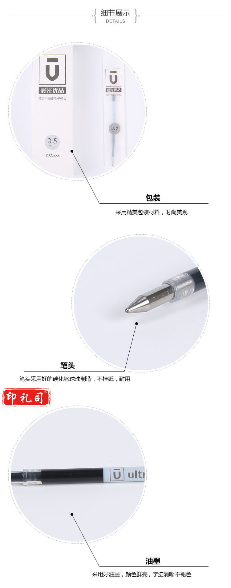 晨光(MG) 水性笔芯中性笔芯水笔芯极细超细 0.28mm/全针管 黑色 42750.5mm子弹头黑色7015