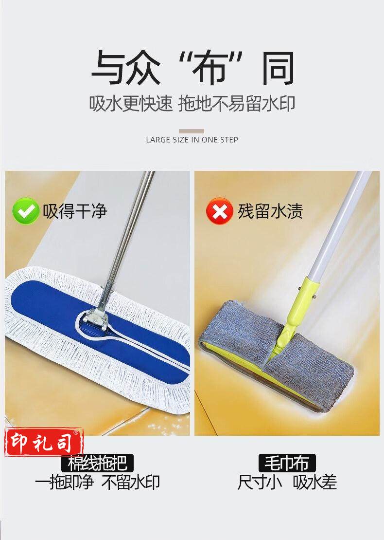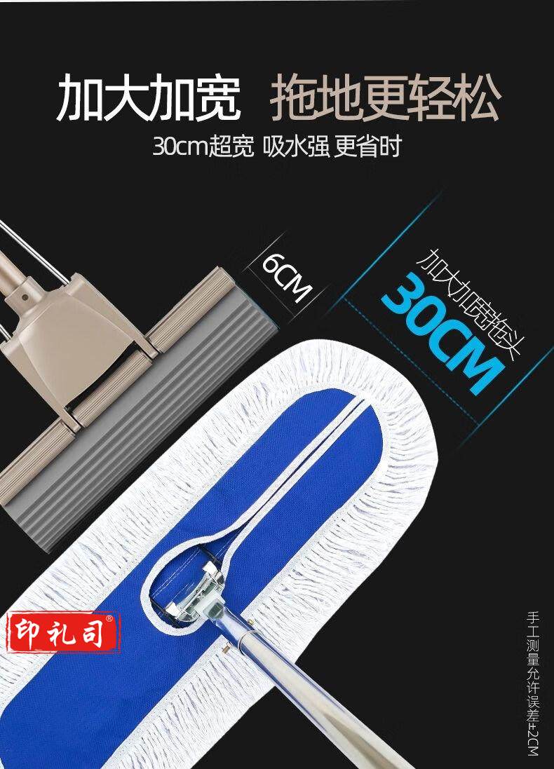 尚美德 尘推拖把 平板拖把排拖商用大号木地板大理石瓷砖吸水棉线排地推保洁拖布平推拖把-110cm110cm替换布