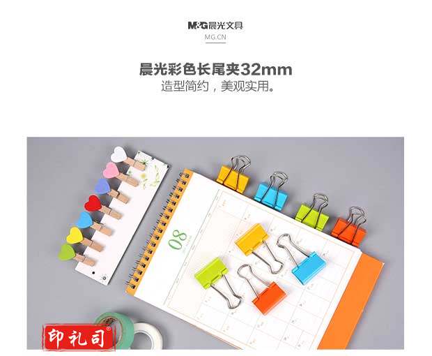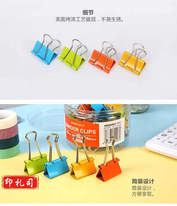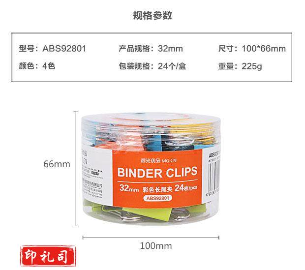 晨光(M&G)文具3#32mm 24只/罐 彩色长尾夹 中号金属票据夹 办公用品燕尾夹 ABS9280162只15mm*3219mm*2025mm*10